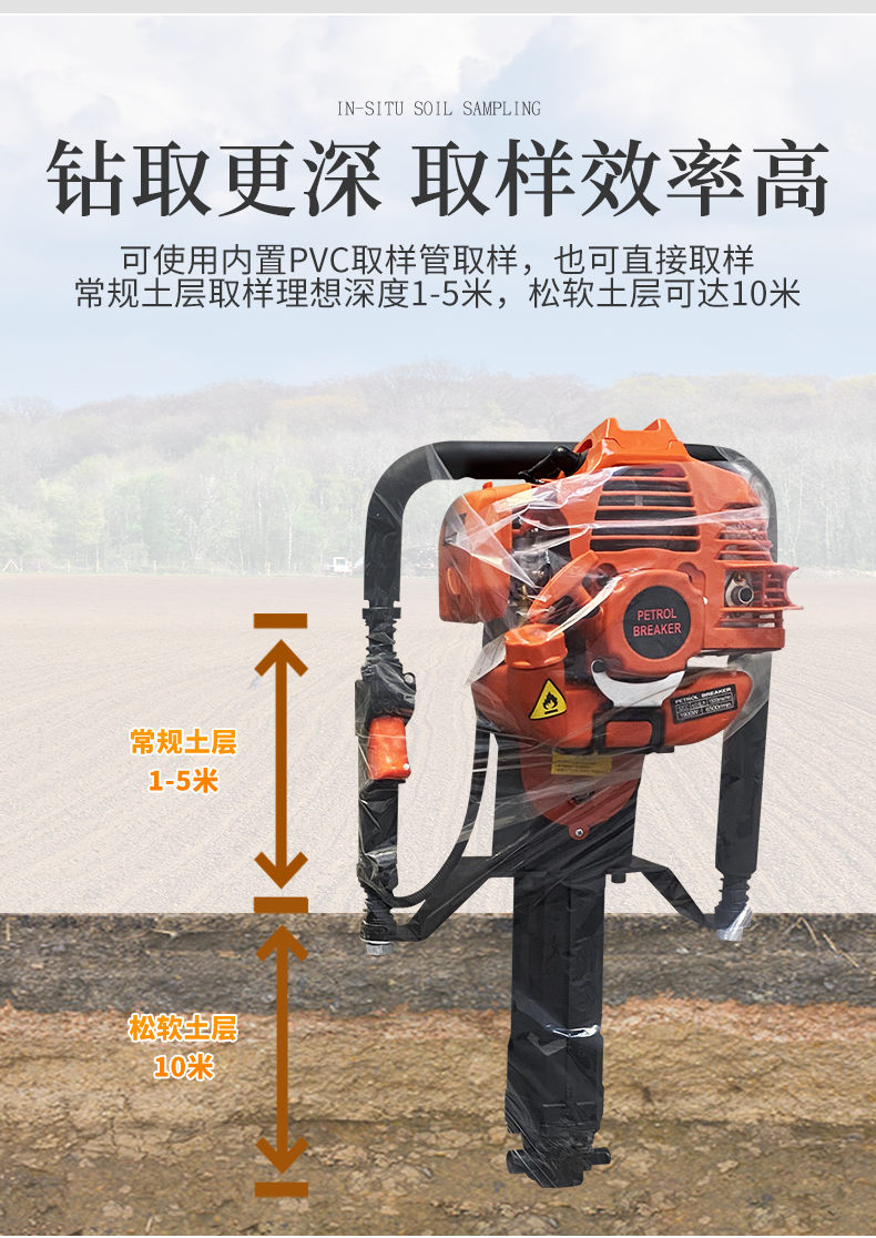 ● 常規土層取樣理想深度1-5米,松軟土層可達10米!